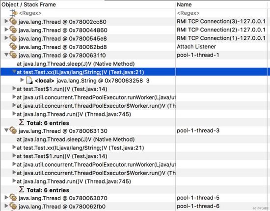 在heapdump里,我们只能看到xx的一个入参,但是代码里明明有两个。这是因为heapdump只能看到对象类型,而不能看到基本类型,因为是heapdump而不是stackdump,是从gc root对象开始把所有可达对象给抓出来了,所以int类型的参数被忽略了,如果我们传的是Integer,就能在heapdump里看到。