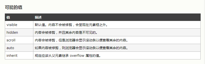 overflow 属性规定当内容溢出元素框时发生的事情。