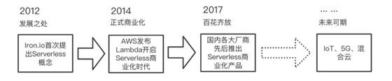 2012 年由 Iron.io 的副总裁 Ken Form 所写的一篇名为 Why The Future of Softwareand Apps is Serverless 的文章中,提出了一个新的观点:即使云计算已经逐渐的兴起,但是大家仍然在围绕着服务器转。不过,这不会持续太久,云应用正在朝着无服务器方向发展,这将对应用程序的创建和分发产生重大影响。并首次将 “Serverless” 这个词带进了大众的视野。