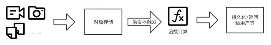 通常要对大数据进行处理,需要搭建 Hadoop 或者 Spark 等相关大数据的框架,同时要有一个处理数据的集群。通过 Serverless 技术,只需要将获得到的数据不断的存储到对象存储,并且通过对象存储相关触发器触发数据拆分函数进行相关数据或者任务的拆分,然后再调用相关处理函数,处理完成之后,存储到云数据库中。