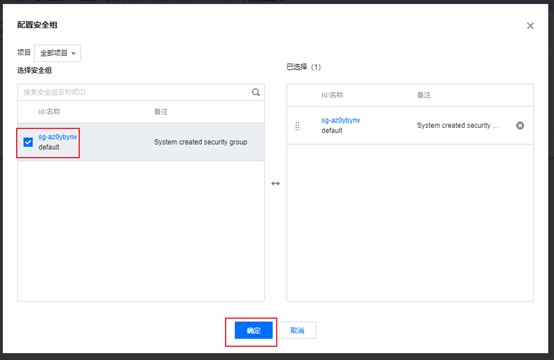5、为辅助网卡绑定安全组,绑定的安全组可以和主网卡一致,该步骤勿忽略。