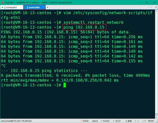 15、第二台机器ping通第一台机器的第二张网卡内网IP即为成功