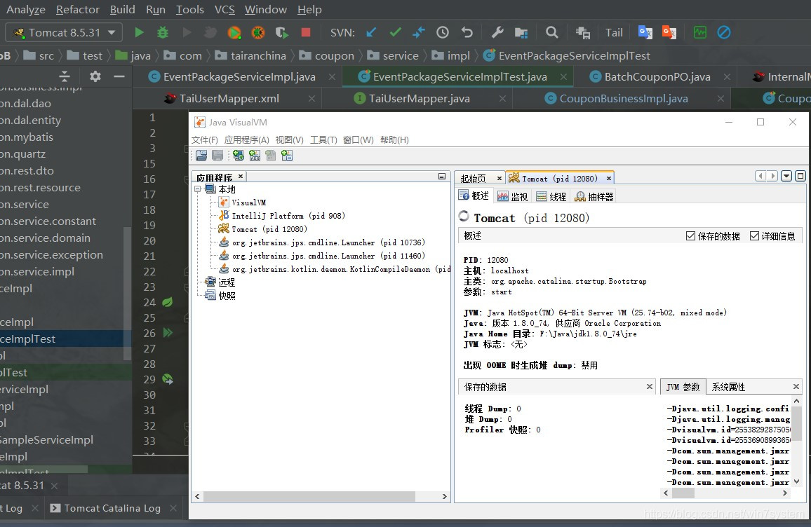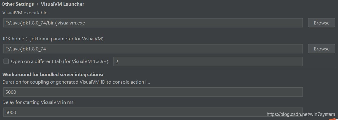 一般可用于在本地开发进行压力测试,性能测试之类的监控器,其他场景一般不推荐使用此模式启动,还会启动另外一个Visual vm窗口,这个窗口是JDK bin目录下的JvisualVM