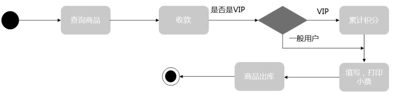 活动图描述商品销售业务模块的主要的业务流程,如下图所示。