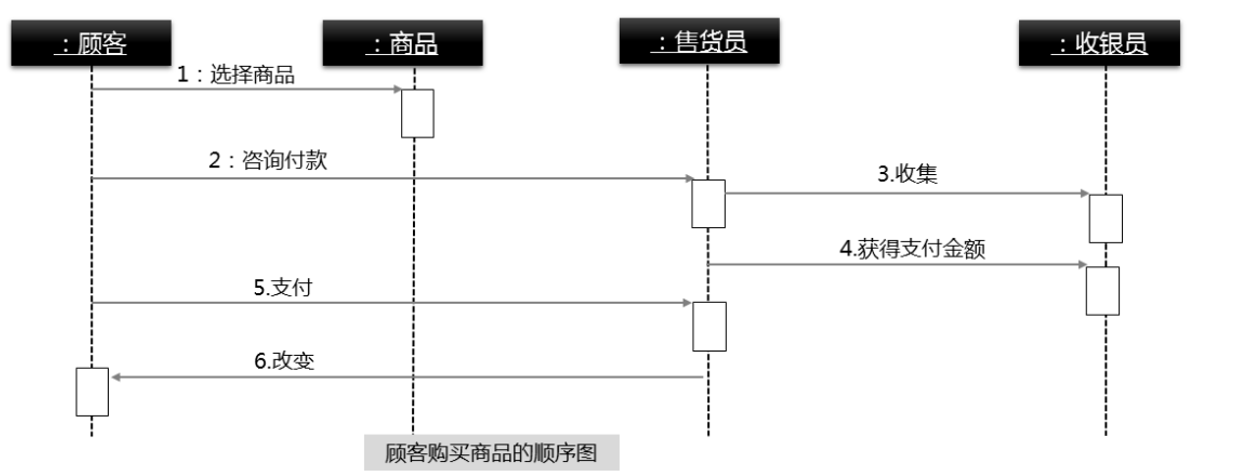 顺序图的目的在于说明对象的协作如何达到系统的目标。系统的目标在进行用例分析时,已被区分为多个子目标,因此,每一张顺序图所表达的,是每一个用例是如何通过对象交互来完成的。