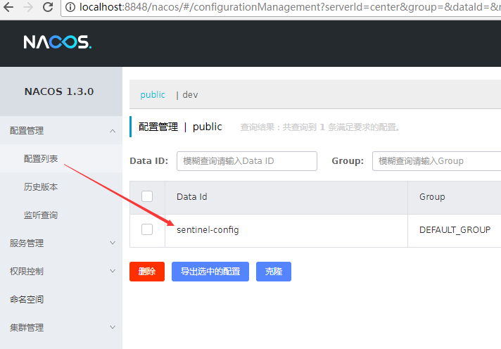 data-id: sentinel-config # 配置项名称