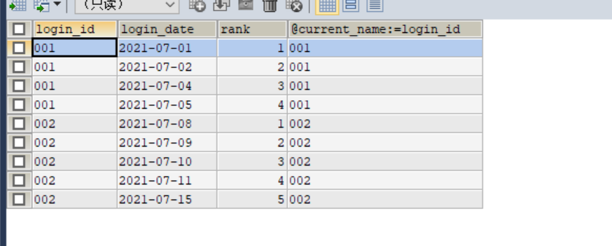 日期和rank相减,相同则是连续登录