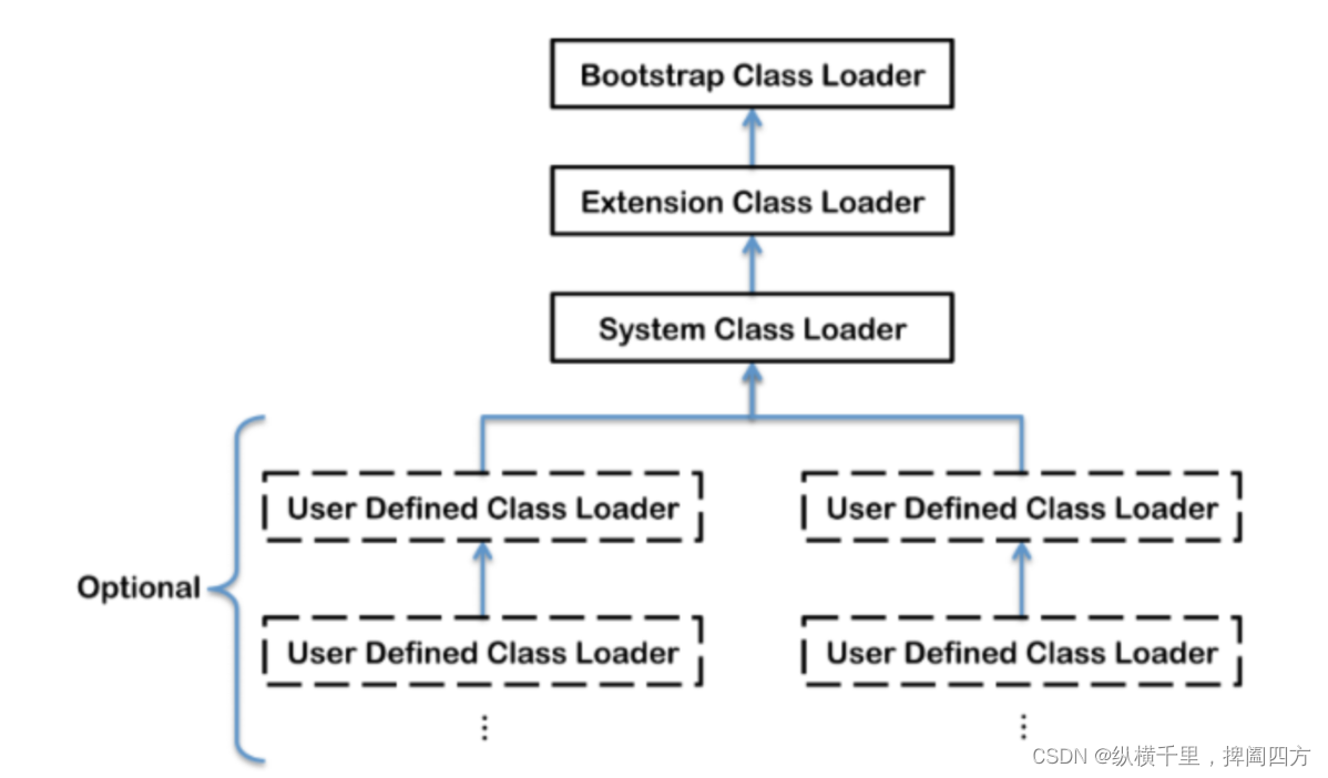 JVM严格来讲支持两种类型的类加载器 ,分别为引导类加载器(Bootstrap ClassLoader)和自定义类加载器(User-Defined ClassLoader)。BootstrapClassLoader是JVM里用C++实现的,而后者是使用Java语言来基于BootstrapClassLoader扩展来实现的。