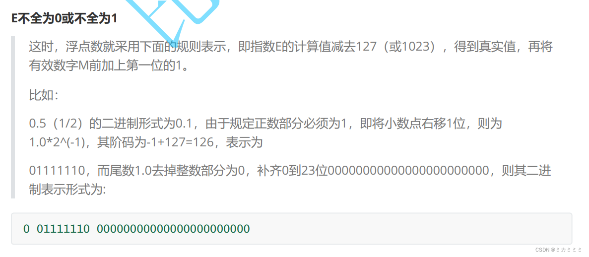 2.E为全1,说明E是个非常大的数字,这个时候M如果为0,表示正负无穷大
