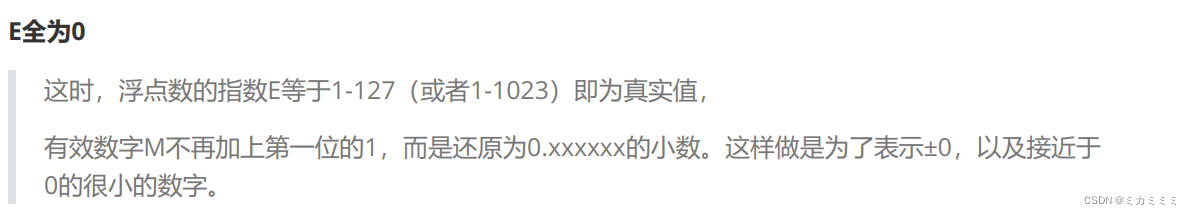 1.E全为0 说明E实际上为-127或者-1023,数很小,