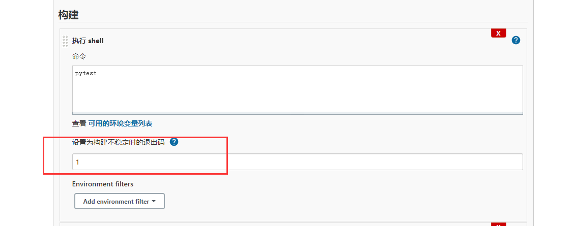 jenkins在构建脚本可以认为1是不稳定的构建,于是设置为构建不稳定时的退出码:1