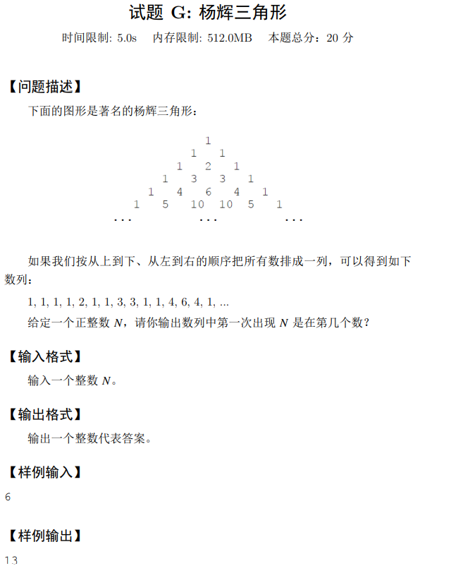 试题G:杨辉三角形⭐⭐⭐
