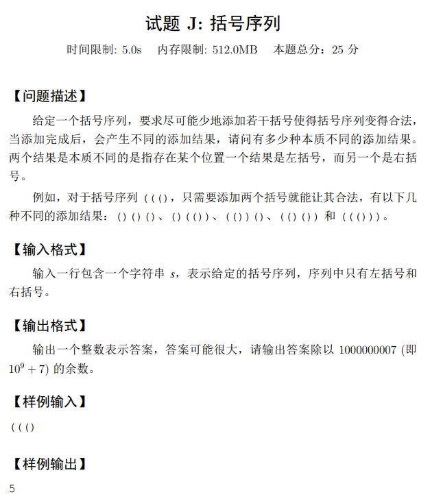 #持续更新中······试题 J: 括号序列