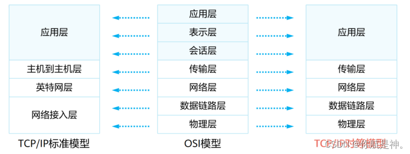 TCP/IP是四层模型(五层--对等模型) OSI 七层