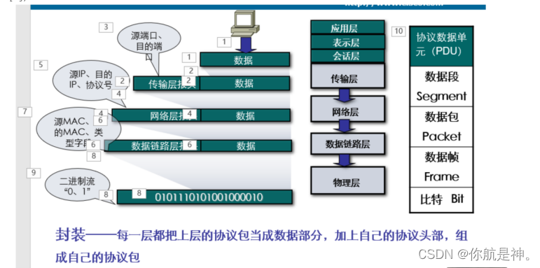 封装可以理解为各层将每一层的实现数据添加到内容数据之前,解封装是逆过程。而真正完成这个工作的是工作在各个层次的协议。
