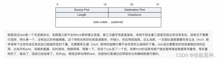 UDP:用户数据报文协议 非面向连接的不可靠传输协议(基于非连接的)