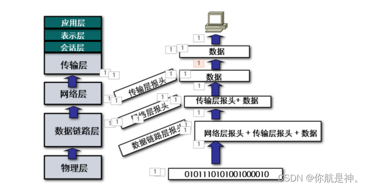 类似于寄信的时候不能可把信纸直接寄出,需要要信封,收件人,发件人,邮编,邮票等东西,这些东西相当于各层的实现数据。