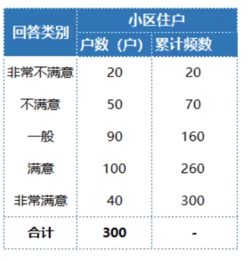 从累计频数看,Q1在一般类别中,Q3在满意类别中