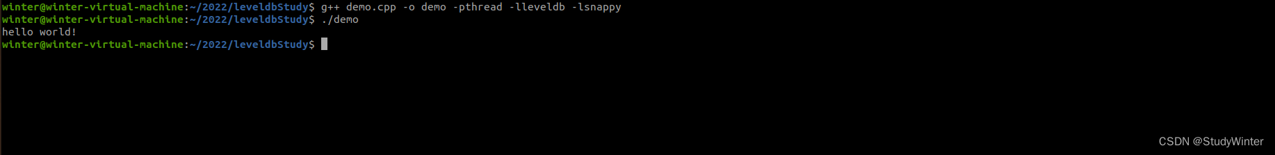 g++ demo.cpp -o demo -pthread -lleveldb -lsnappy结果