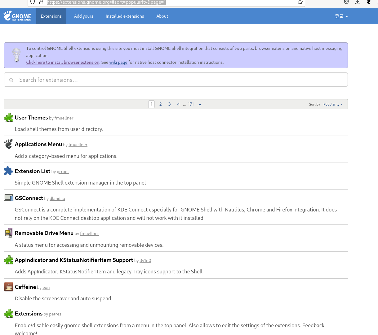 2、安装完成后就可以进入gnome官方shell扩展中心安装了。