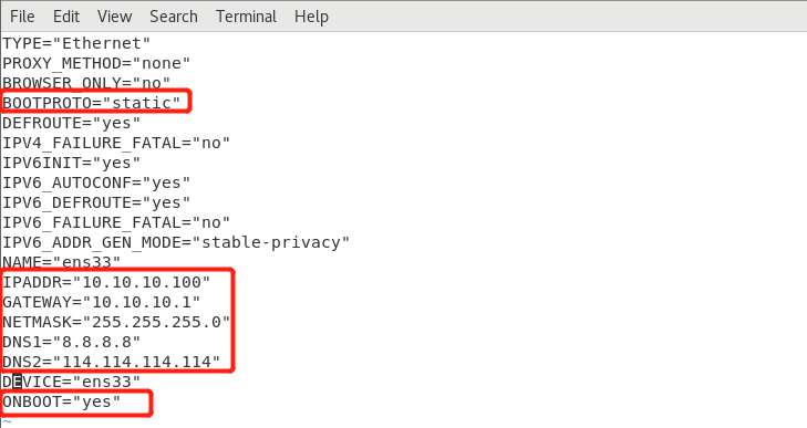 vim ifcfg-ens33