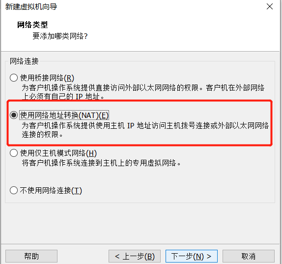 注意选择网络类型 NAT