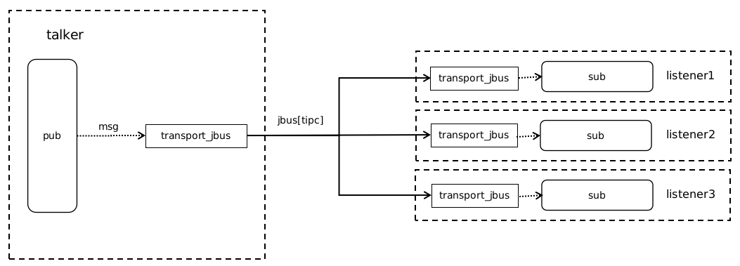 roscpp 是点对点通讯形式,talker 会为每一个listener创建一个transport。而jbus是点对面通讯,所以我们要改变pub的行为,即无论有几个listener,talker只创建一个transport,由jbus通过tipc广播给每一个listener。