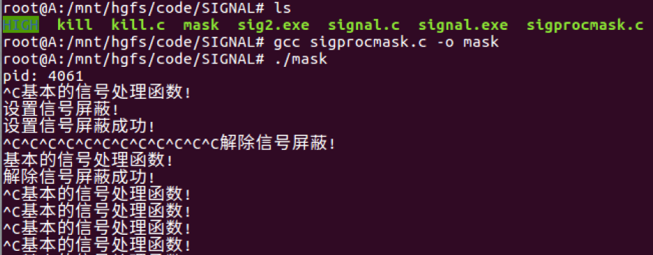 printf("解除信号屏蔽成功!\n");