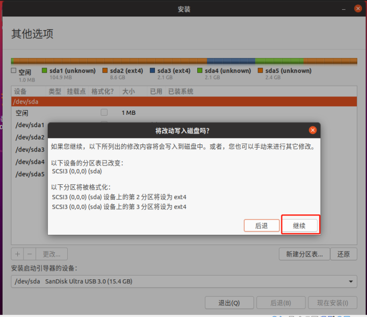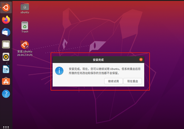 安装完成就可以重启拔掉U盘了,就此Ubuntu安装到U盘完成