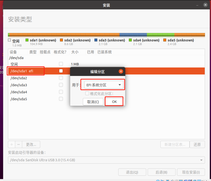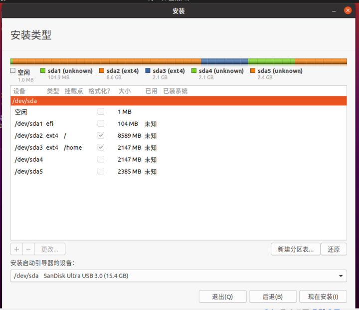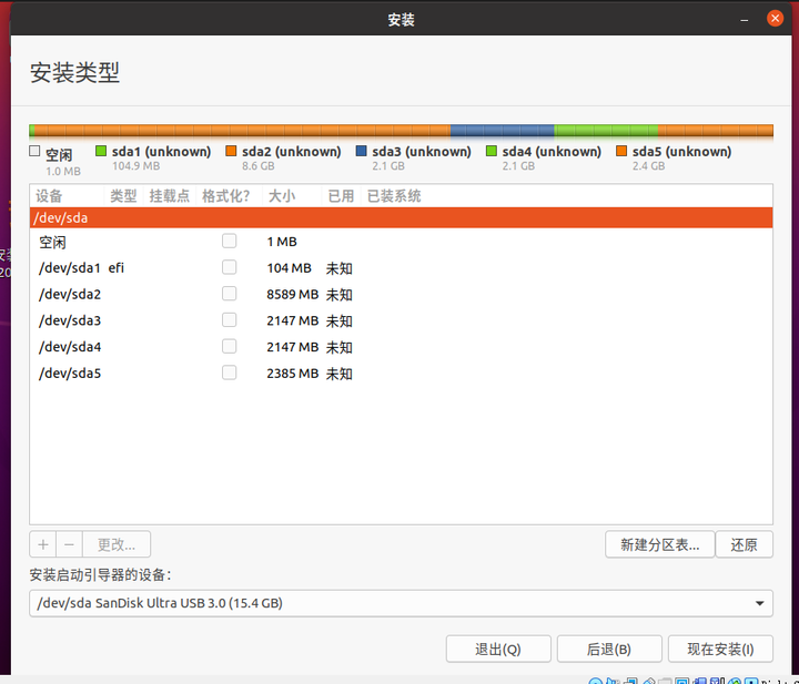 视各自U盘而定,我的U盘里面本来就有2个分区,sda1和sda2,但是不管有没有分区,sda是必须要有的,如果没有或者有sdb sdc(可能是创建了虚拟硬盘,要删除掉)等U盘接入就是有异常了。