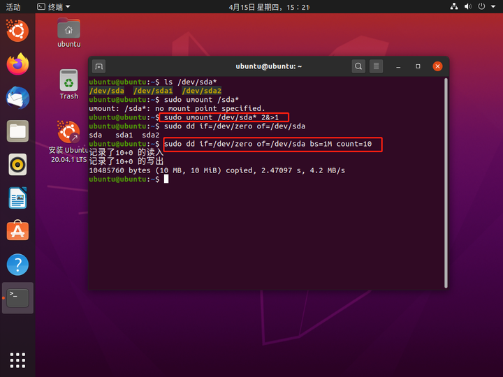sudo dd if=/dev/zero of=/dev/sda bs=1M count=10