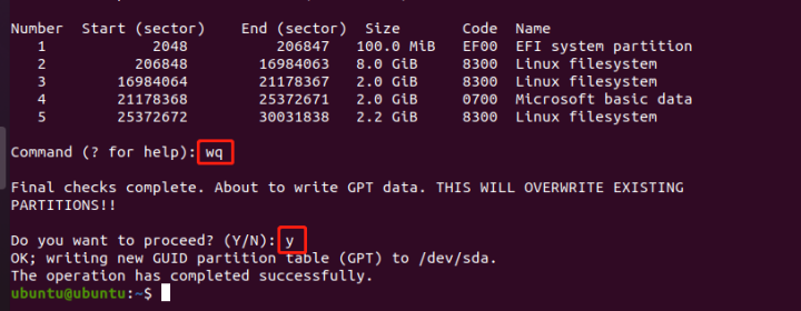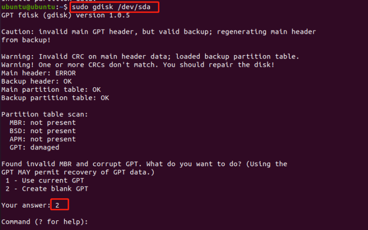 sudo gdisk /dev/sda