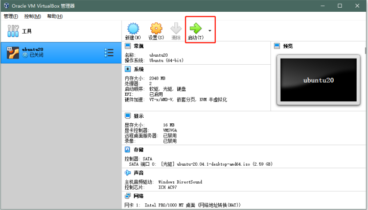 启动虚拟机,点击启动;