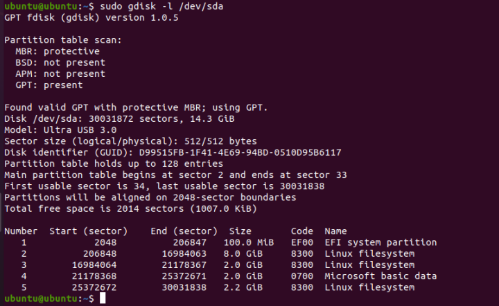 sudo gdisk -l /dev/sda