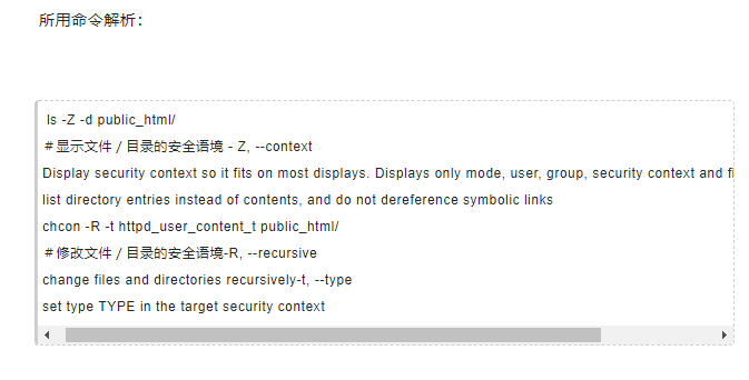 用以下命令修改文件夹安全属性:chcon -R -t httpd_user_content_t public_html/