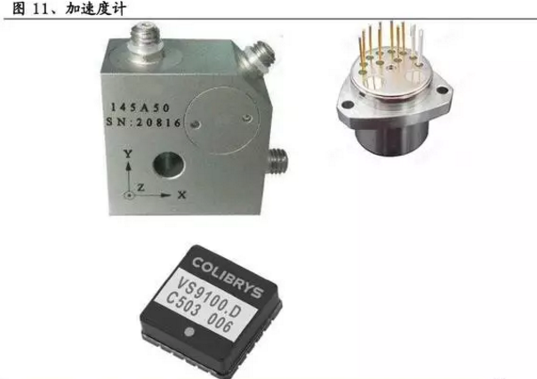 加速度计是惯性导航系统的核心元件。加速度计测量加速度,利用的原理是 a=F/M,测量物体的“惯性力”。