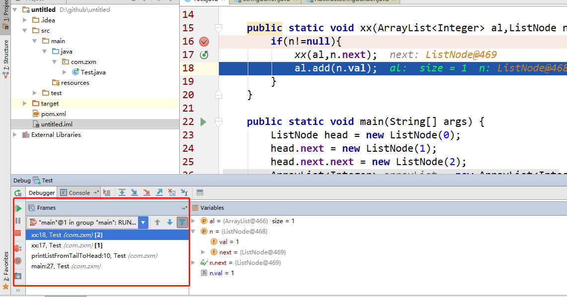 idea调试工具方法调用栈:这里显示了该线程调试所经过的所有方法,勾选右上角的[Show All Frames]按钮,就不会显示其它类库的方法了,否则这里会有一大堆的方法。 版权声明:本文为zhang_xiaomeng原创文章,遵循CC 4.0 BY-SA版权协议,转载请附上原文出处链接和本声明。原文链接:https://blog.csdn.net/zhang_xiaomeng/article/details/103109371