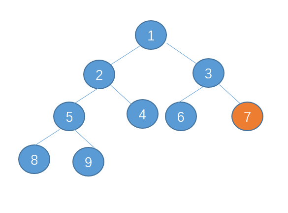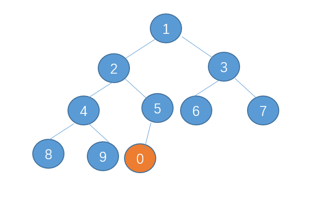 所以,在插入的时候,我们把新节点插到完全二叉树的最后一个位置。例如: