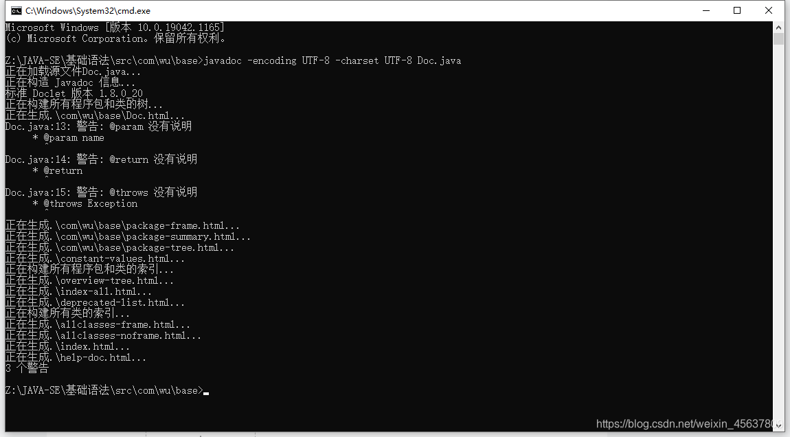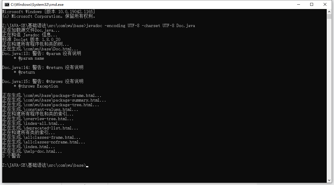 3)在doc界面输入 javadoc 参数 java文件名