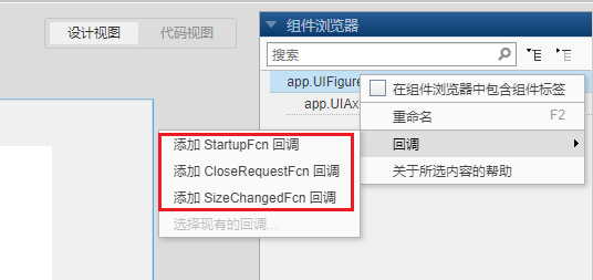 StartupFcn回调函数,用于打开这个app的时候需要执行的东西。例如在前面显示图片,都是通过给按钮添加回调使得图像显示,那么想要直接打开软件就能显示图像,则需要使用到SartuoFcn回调函数。