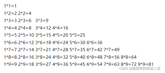 无论什么语言,九九乘法表无非就是两个for循环的嵌套,在JavaScript中就只需要在Script标签中写下即可实现,代码如下: