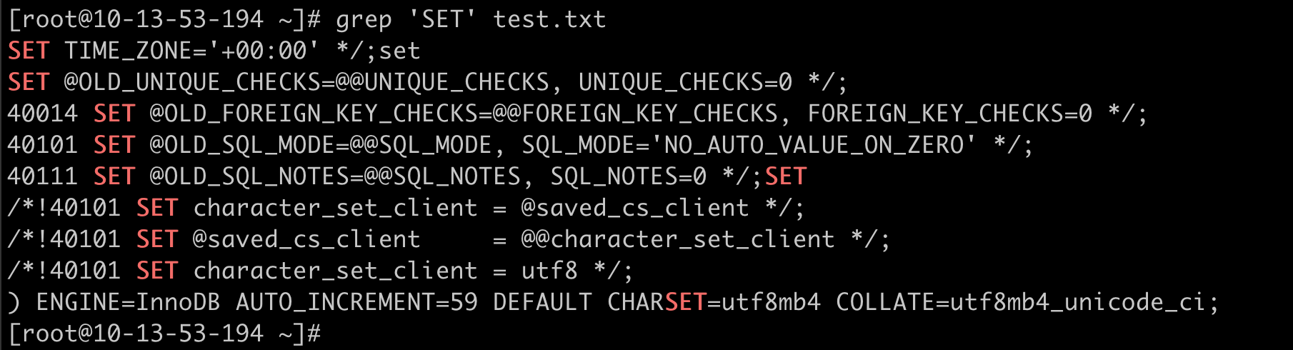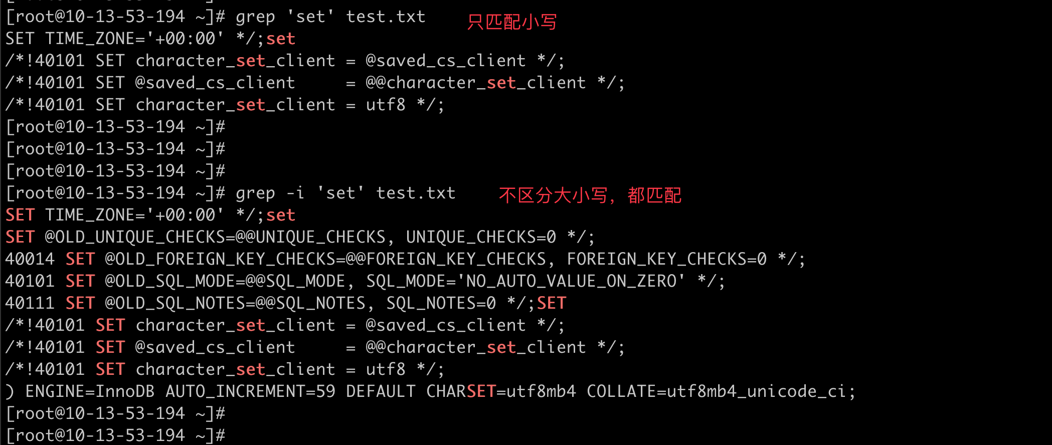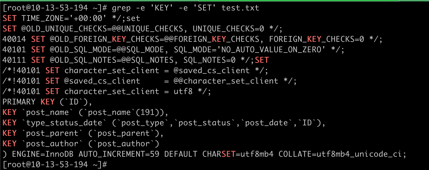 26 ) ENGINE=InnoDB AUTO_INCREMENT=59 DEFAULT CHARSET=utf8mb4 COLLATE=utf8mb4_unicode_ci;grep完全匹配