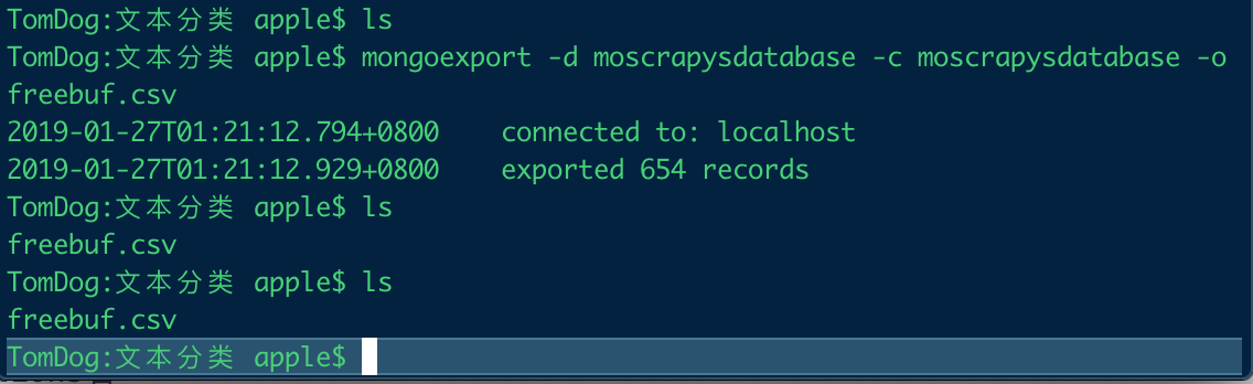 mongoexport -d 数据库名 -c collections的名字 -o filename.json/filename.csv -f field