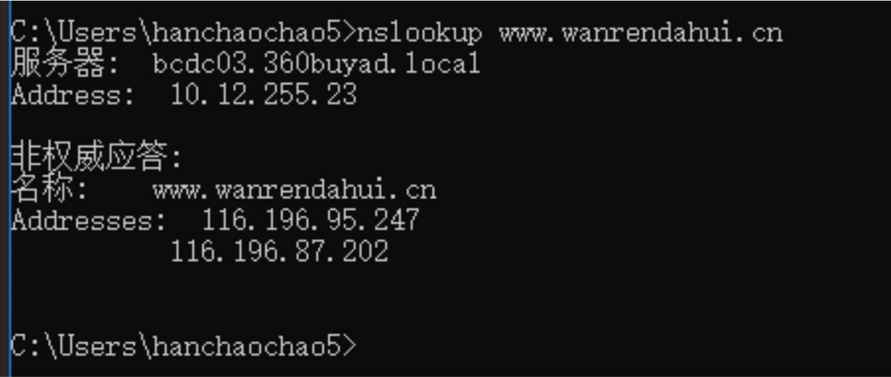 我们用nslookup命令发现域名也已经解析到了备用地址