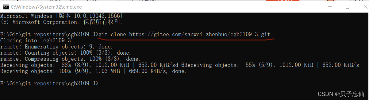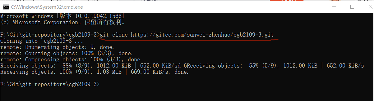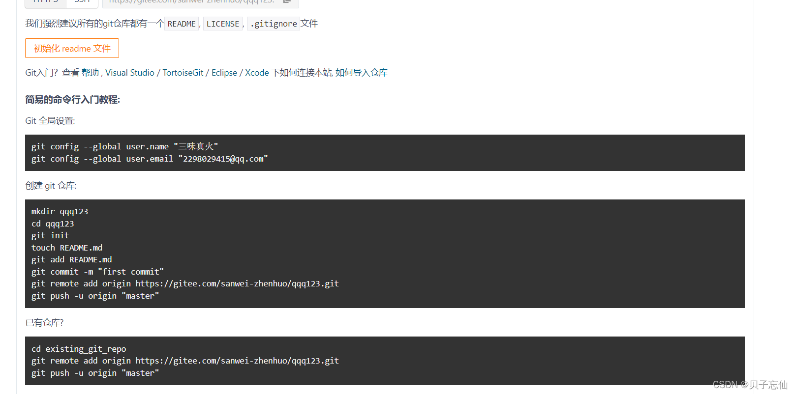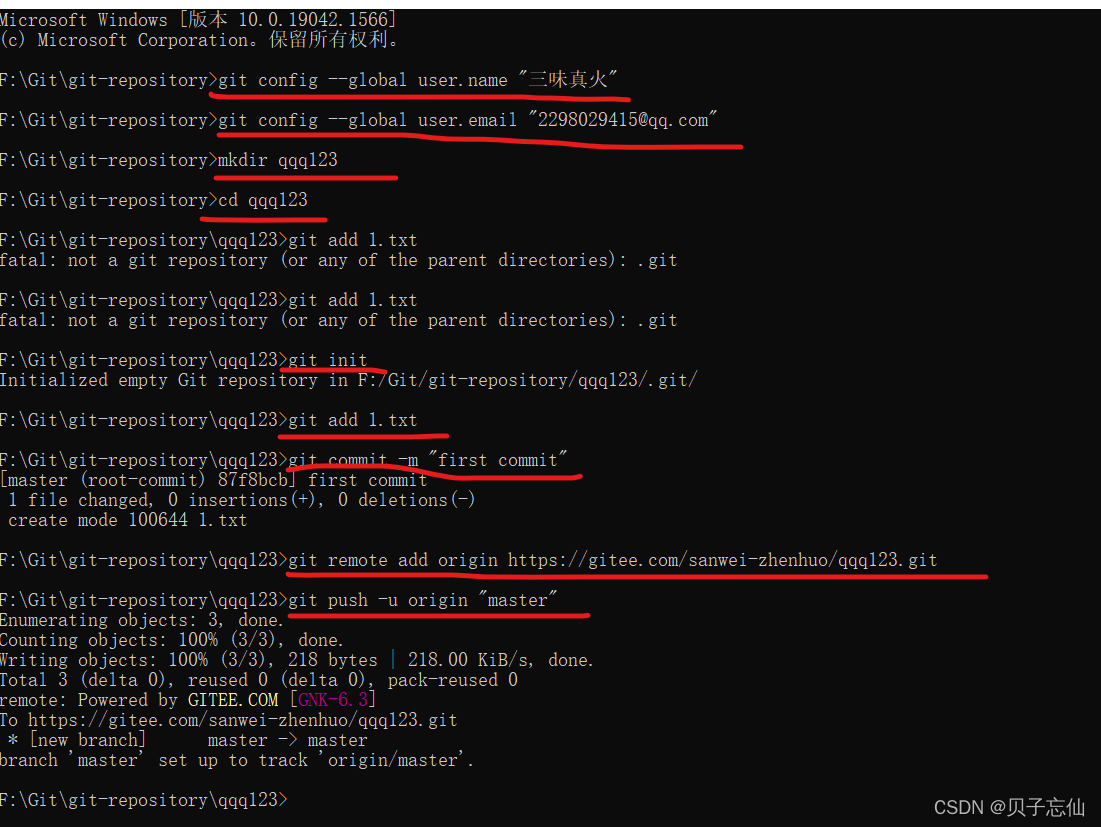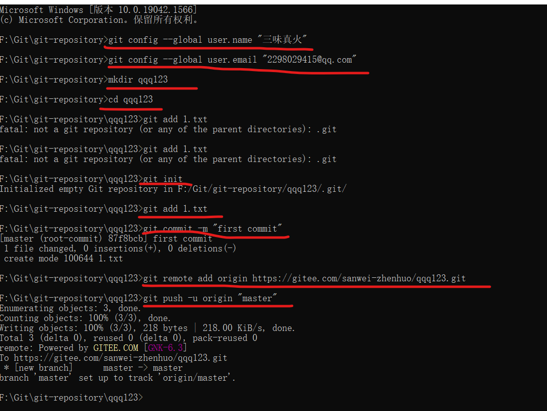 将码云上的命令依此输入即可