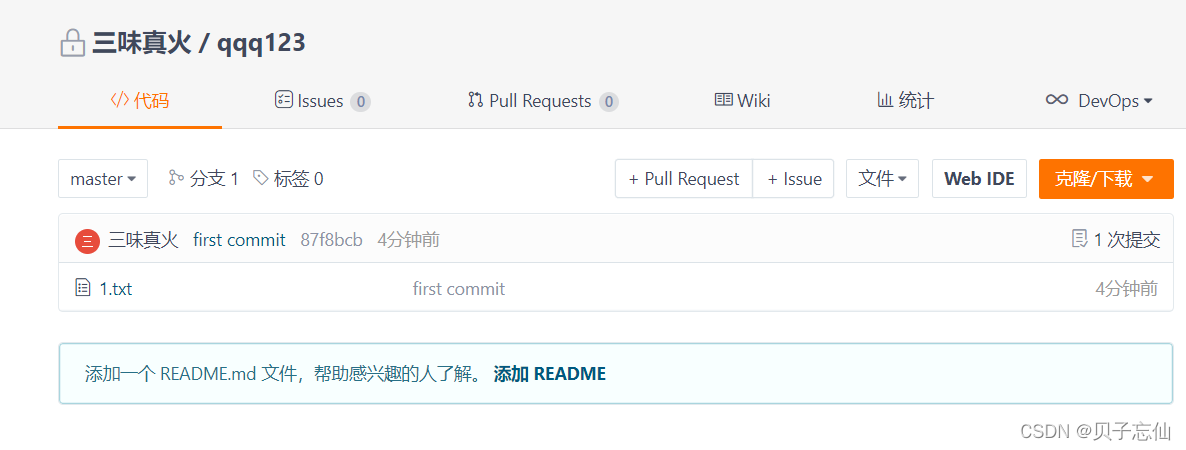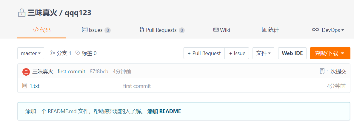 刷新gitee页面出现以下情况即创建成功