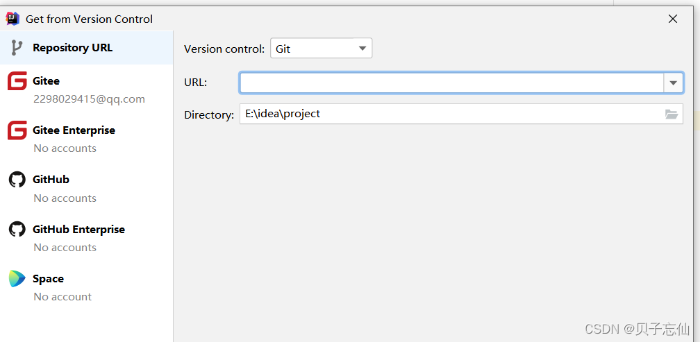 点击Settings – Version Control– Gitee,然后点击Add account,添加账户