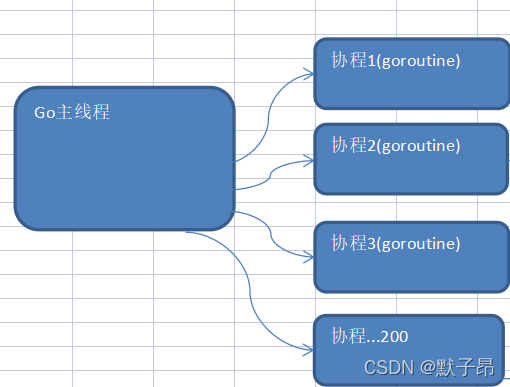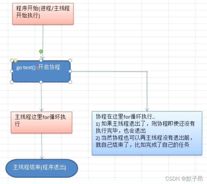4、协程是轻量级的线程go语言中的主线程和协程关系图