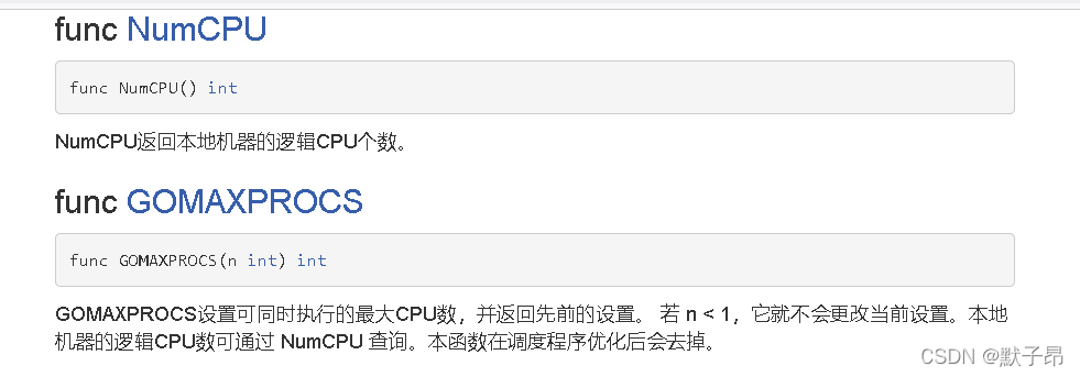 可以找到NumCPU、GOMAXPROCS的函数,用于查询当前系统有几颗CPU