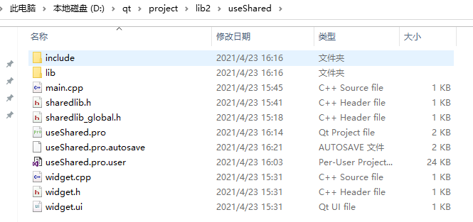 sharedlib.h、sharedlib_global.h文件拷贝进入include文件夹中,sharedlib.dll文件拷贝进入lib文件夹中。